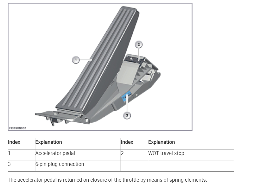 Also, can you please check the floormat to see if it is holding the throttle pedal down slightly? You may have a throttle pedal position sensor that has gone out, but I am hoping a code will come back for it, also has this can had any water damage? Here is the throttle pedal and sensor in the images below, if it gets wet it will malfunction. Please run the codes and get back to me.