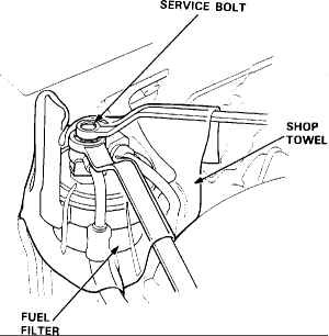 Warning: Do not smoke while working on the fuel system. Keep open flames or sparks away from the work area. Be sure to relieve fuel pressure while the engine is off .