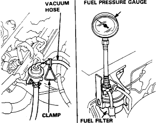Start the engine. Measure the fuel pressure with the engine idling and the vacuum hose of the Fuel Pressure Regulator disconnected.