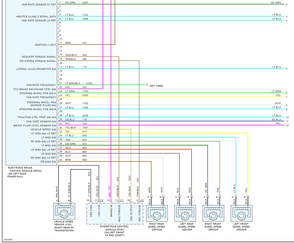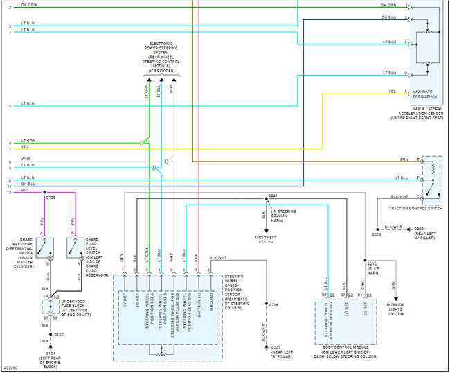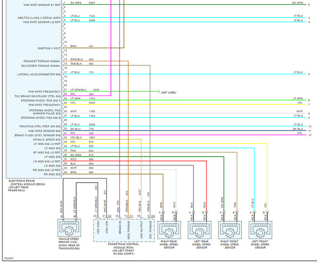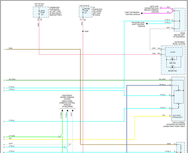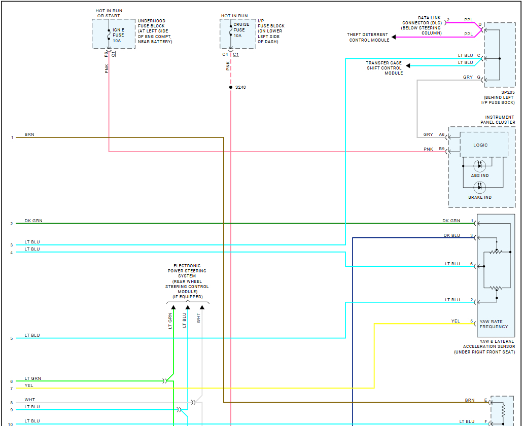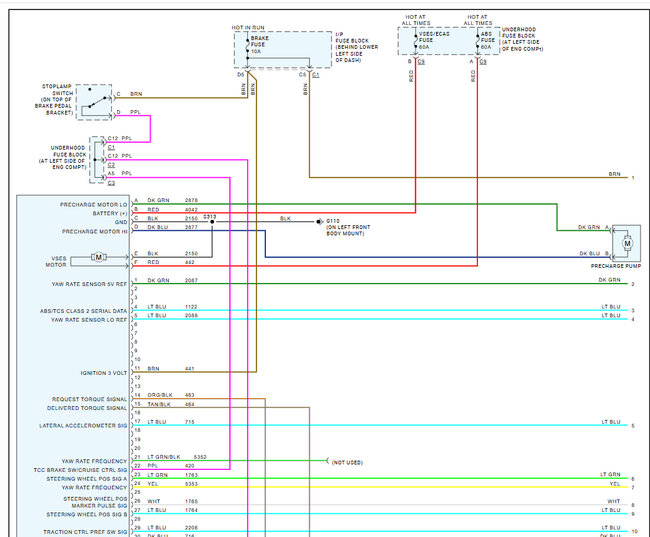 I had a mouse get to one of the wiring connectors that, I believe, helps control the stabilitrak system. It is a 10 pin connector, and one small section that doesn't have the wire loom coverage. It is located in the engine compartment, right below the BCM and fuse box, on the inner fender well. I'm looking to try to either directly wire the section, or get a new connector/repin. I need the diagrams to do this. 2006 Chevy Tahoe LT 4x4 Part of my concern on this, is that there are 3 light blue wires going through this connector. Without the diagram(s), I fear that a rewiring job may turn into further issues.