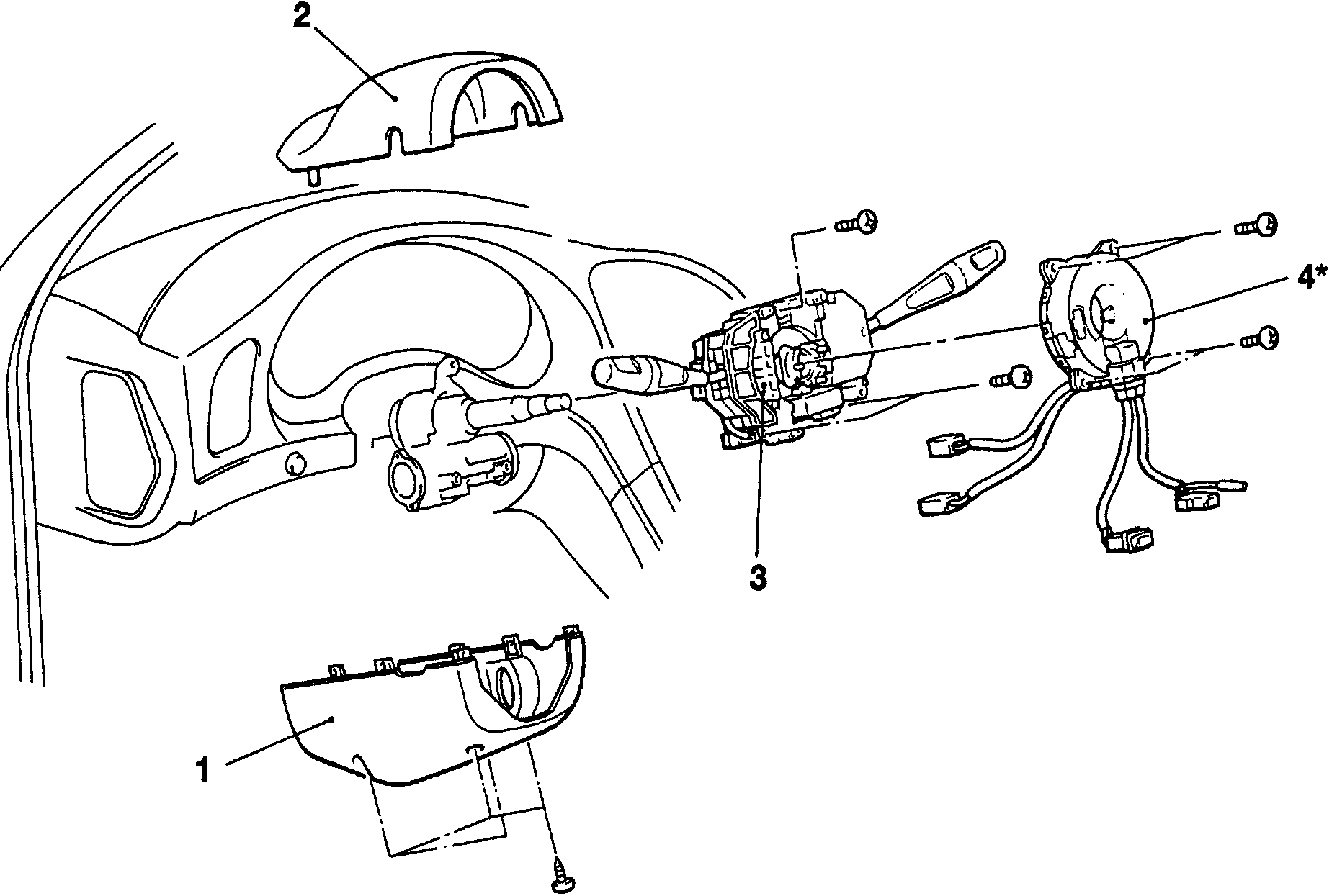 Note: Do not remove parts marked with * from the column switch except when removal is absolutely necessary.