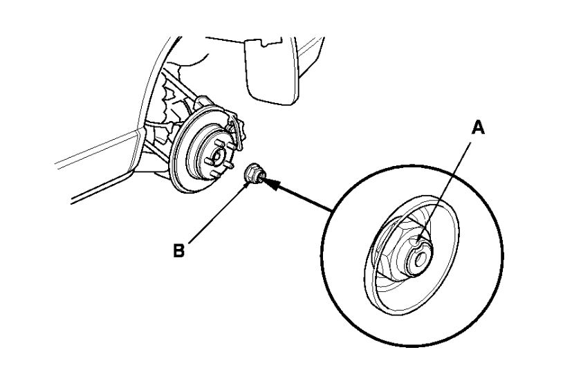 3. Pry up the locking tab (A) on the spindle nut (B), then remove the nut.