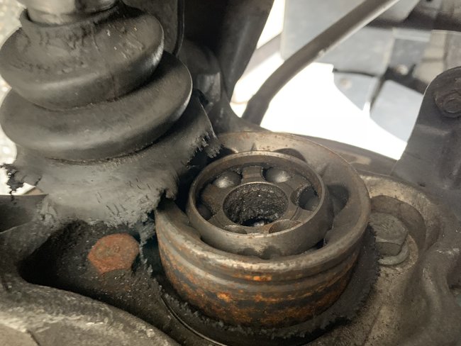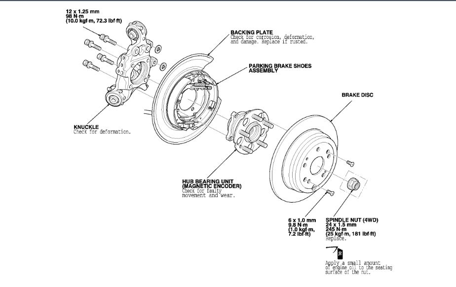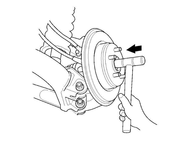 6. Pull up the knuckle outward, and separate the outboard joint from the rear wheel hub using a plastic hammer.