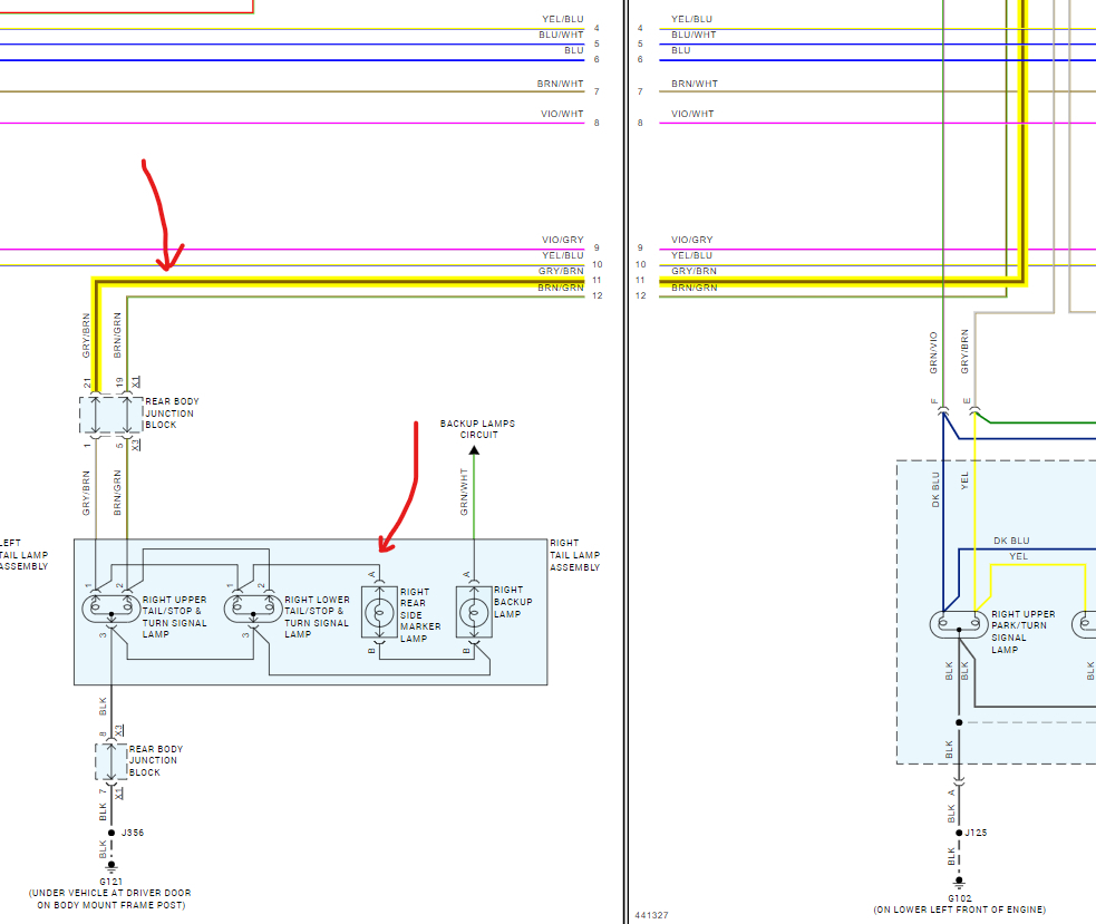 The taillight on the right rear is not working, I have everything, brake lights, signals, backup lights. Replaced the power block, Right wiring harness, just the right taillight is out, bulbs are all new, fuses seem to be good, power at relay and fuses, headlights have started to go out. I turn off truck restart they will stay on, but no taillight, I have upgraded my headlights to LED bulbs long ago and just recently have started cutting out. Do you think they could be linked and causing this taillight problem?