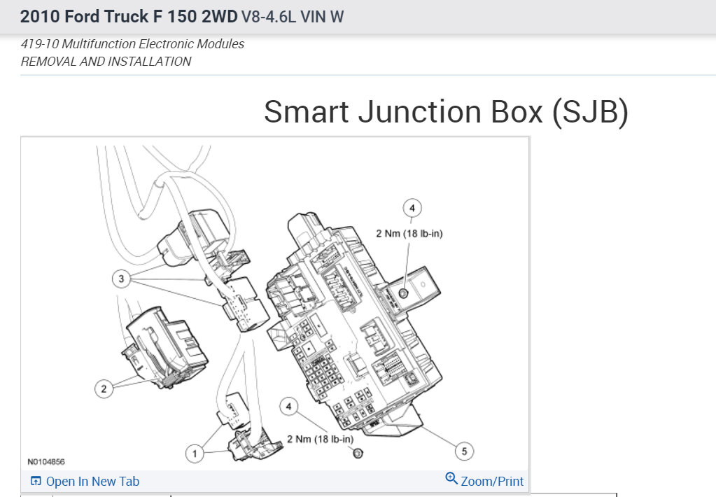 Download the SJB configuration information from the scan tool to the SJB. For additional information, refer to Section 418-01.