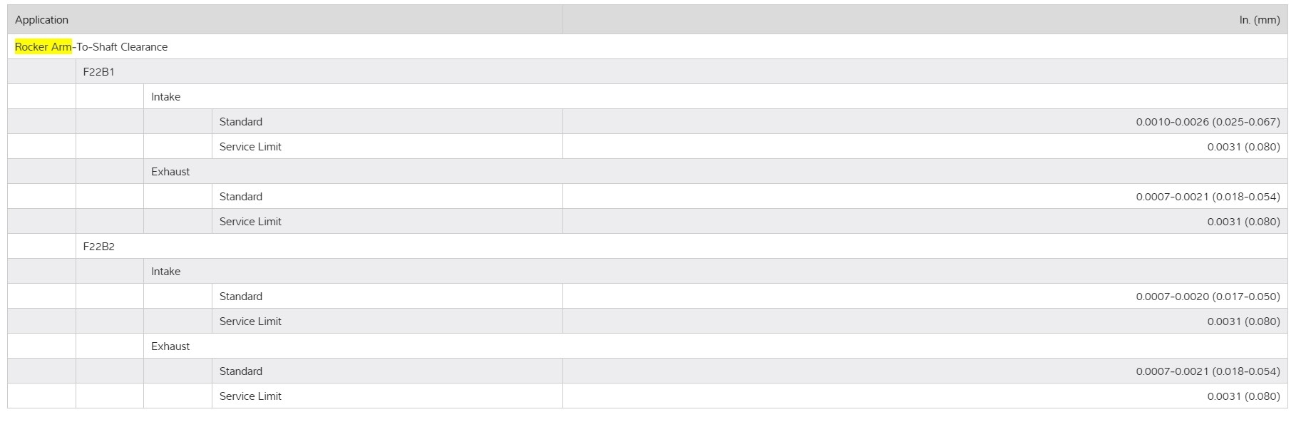 I am including the measurements for the rocker arm to shaft clearance as well as some information on installation.