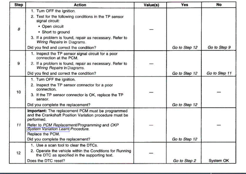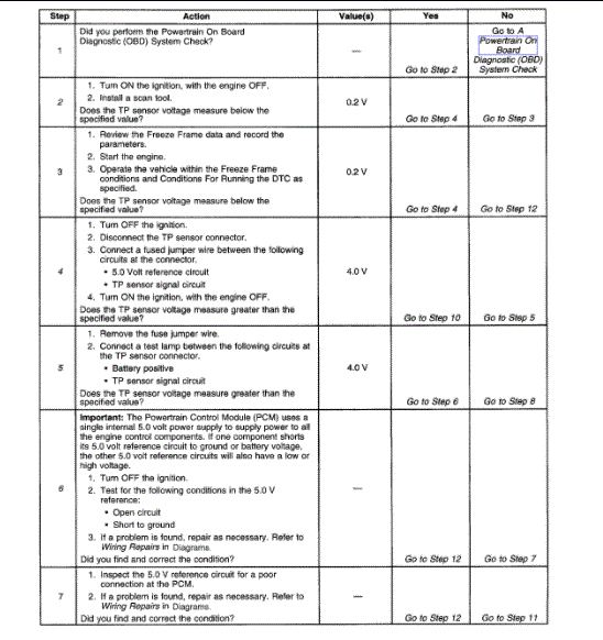 2. The TP sensor has an auto zeroing feature. If the voltage reading is between 0.20 Volts and 0.90 Volts, the PCM will automatically assume this as a closed throttle position (0 percent).