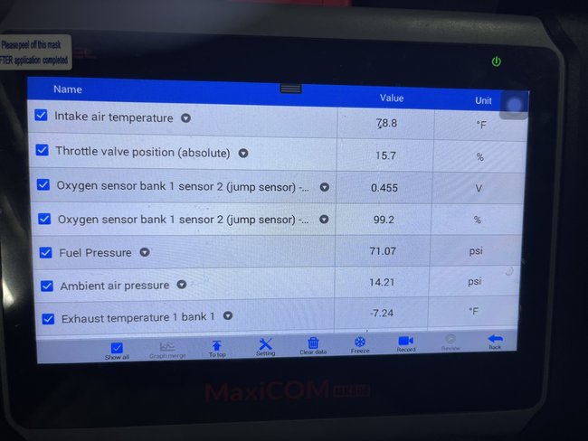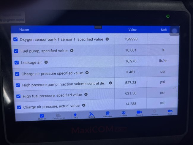 I couldn't see any of the data on that other scan tool, it cuts the screen in half when its sideways. As for the smoke machine, I would avoid the PCV system because you want to check that for leaks as well, they seem to leak more than anything to be honest, You can go into the throttle body as long as you're able to seal it up around the hose, or the brake booster, I don't know the exact setup of your vehicle, You can send a picture of the engine facing directly down on it, I'm having trouble locating a decent picture.
