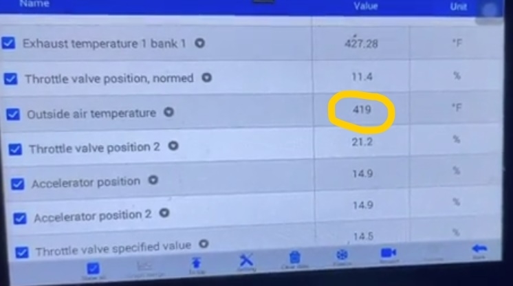 2. Outside Air Temperature Sensor is reading 419 F (pic 4).