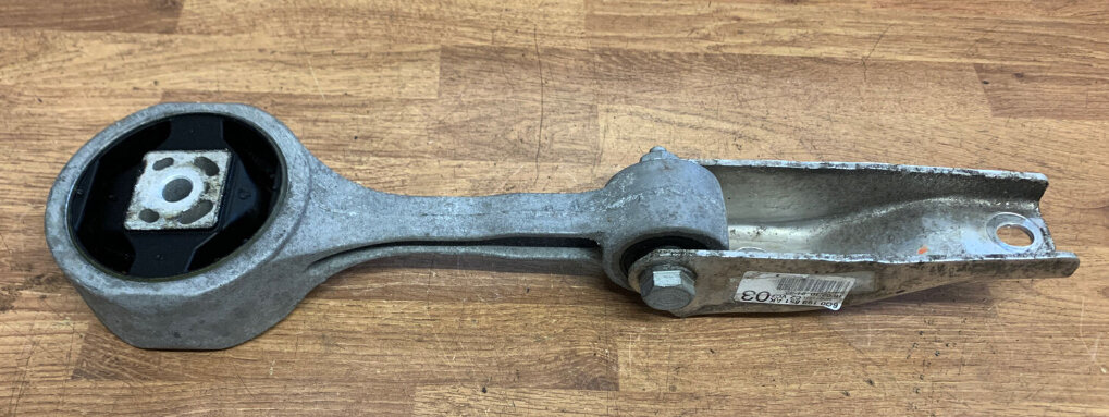 It is mounted into a recess in the subframe and attached with 2 bolts on the lower transmission housing, see image 1.