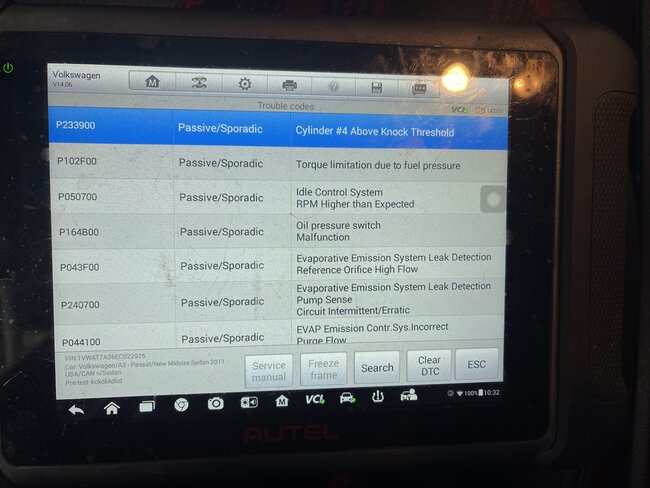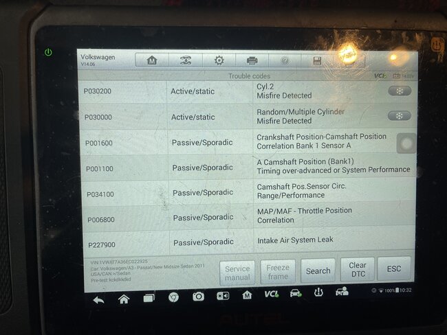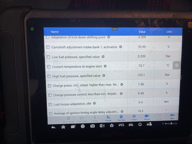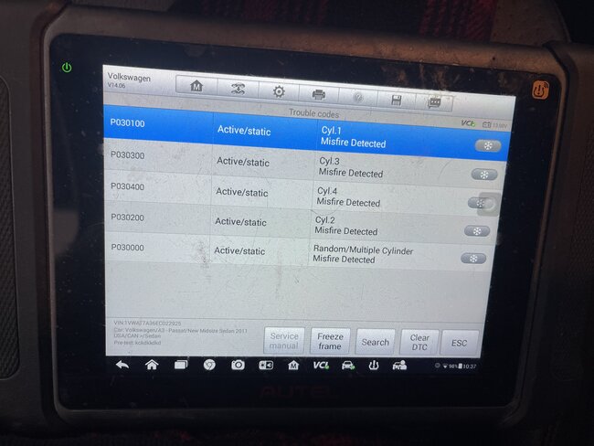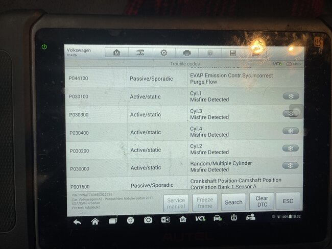 So this car starts fine from cold. About 3 minutes later after the idle/rpm settles it starts to idle up and down. Rev it high about 2000 for a bit then leave it and it smooths out. A bit later it does the same thing. It didn't have a check engine light so I replaced coils, plugs and PCV as I had an extra set knowing this is the most common with these cars. Oil is full same for coolant. But there is also water coming out of the tail pipe with black material. I have seen several cars do that before. Its super cold today abd car is inside the garage. You drive it and it's fine, no misfires at all. But leave it and in a bit it does the same thing. Took a screen shot of all the codes that were there even though check engine light and epc were not on. Deleted them and only the misfires came back so far. Also took screen shot of some live data in case you may spot something out of the ordinary. I have 3 videos attached too. I have an idea of what it could be but I want to hear your thoughts. I will also do a smoke test to eliminate that possibility. Thanks
