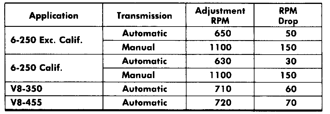 6. Adjust idle speed to RPM specified for lean drop adjustment as in step 4.