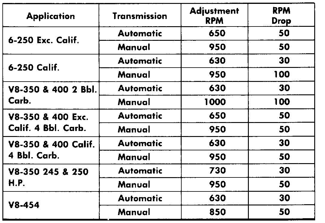 NOTE: On 2 and 4 barrel carburetors, turn mixture screws in equally to obtain specified RPM drop.
