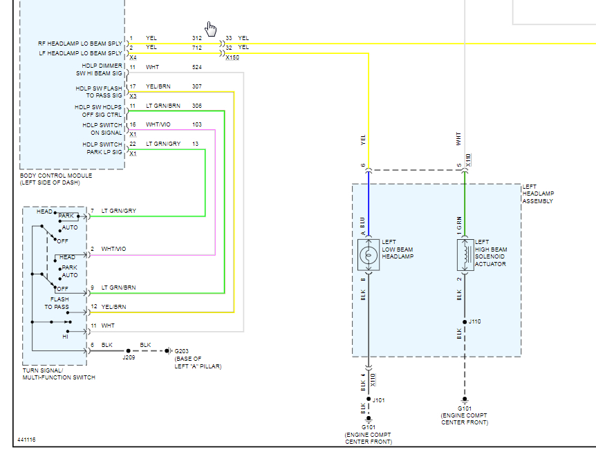 Here are the wiring diagrams. I am assuming that you have non HID headlights meaning you have regular halogen bulbs. If you have HID let me know and I will send those diagrams but you said you replaced the bulb and the HID lights normally come as an assembly.