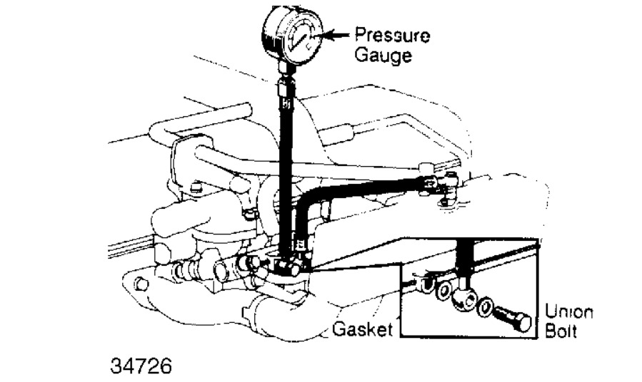 Reconnect pressure regulator sensing hose. Fuel pressure should drop to 27-31 (1.9-2.2 psi). If pressure does not change as specified, check vacuum sensing hose and pressure regulator.