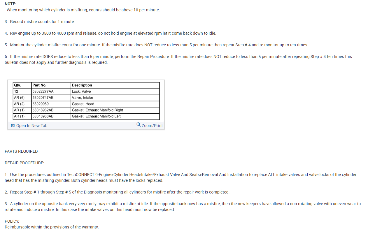 To run this procedure you will need a tester that you can check live misfires on the tester it will show the cylinders what there are doing while it is running (it will show all cylinders and have 0 and when that cylinder misfires the 0 will change. Then when it is misfiring it should change to for instance 100 + or -. Write witch cylinders show misfires.