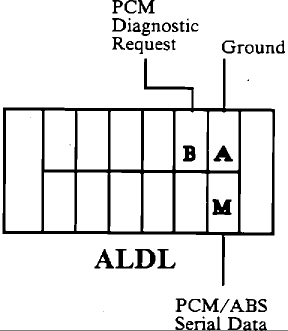 The code(s) stored in the PCM's memory can be read either through a hand held diagnostic scanner plugged in the ALDL connector or by counting the number of flashes of the 'service engine soon" telltale lamp when the diagnostic terminal of the ALDL connector is grounded. The ALDL connector terminal "B" (diagnostic terminal) is the second terminal from the right of the ALDL connector's top row. The terminal is most easily grounded by connecting it to terminal "A" (internal PCM ground), the terminal to the right of terminal "B" on the top row of the ALDL connector.