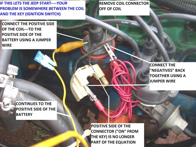 ............THIS WILL TELL US IF IT WILL RUN......AND WILL TELL US IF IT'S IN THE WIRING (OR COMPONENTS ALONG THE WAY)