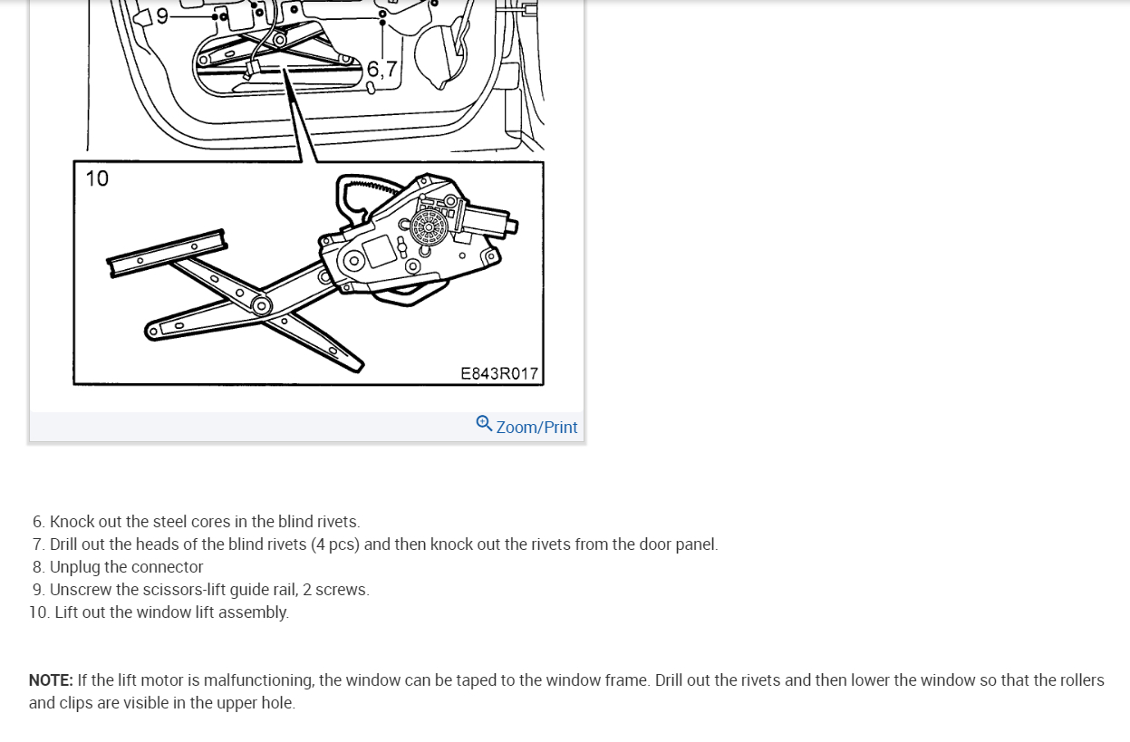 I have power windows. The window on the drivers side has become detached from what ever holds it to the motor works. The motor is fine. If I pull the glass up by hand to about 2 or three inches from the top of the window frame, the motor track will raise it up and hold it firmly in place. If I attempt to lower the window, it will go down 2 or 3 inches and then free fall the rest of the way. What and how is the window held to the equipment that holds it in place.