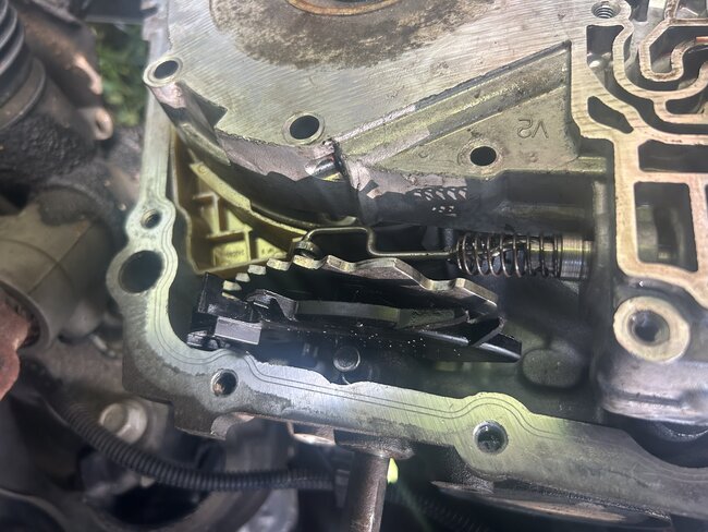 Basically, the entire valve body has to come out then the actual gearing for the transmission and the apply pistons and clutches all need to come out. Pretty much doing a rebuild with it to get that switch out, as such you might want to get a kit and go through it since you will be almost there just getting the switch out. There is a retaining pin that holds it in the case as well. It is pretty much the last thing to come out of the case and the first to go in.