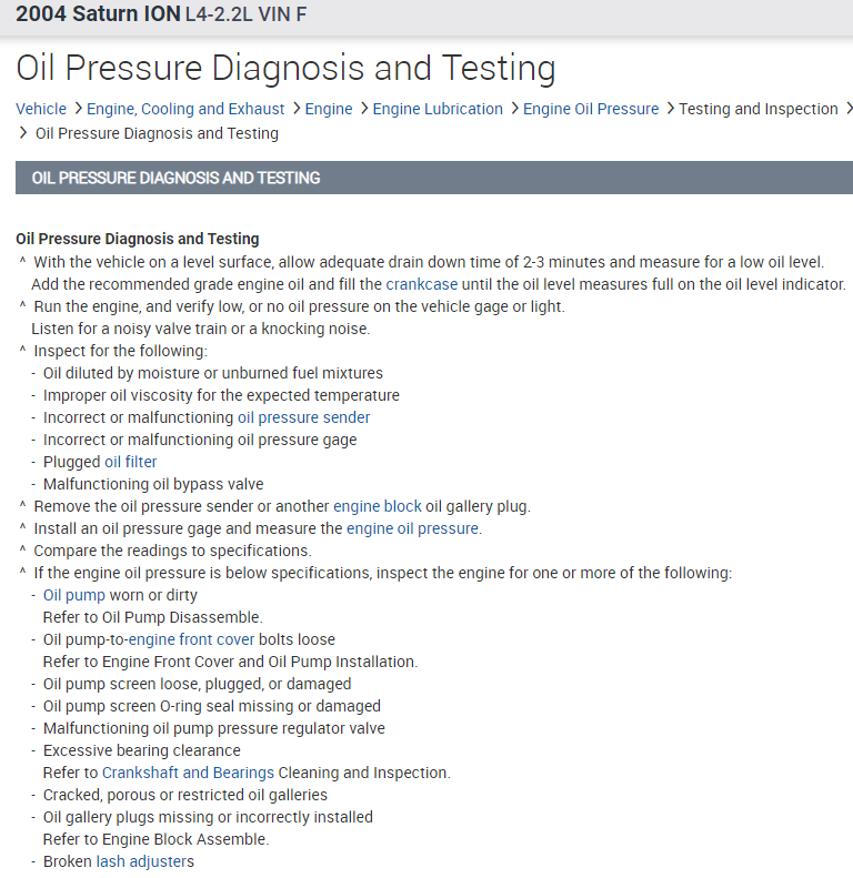 My 2004 saturn ion do not have any oil pressure. I was driving and the battery light and oil light came on together. I changed the battery, but still no oil pressure.