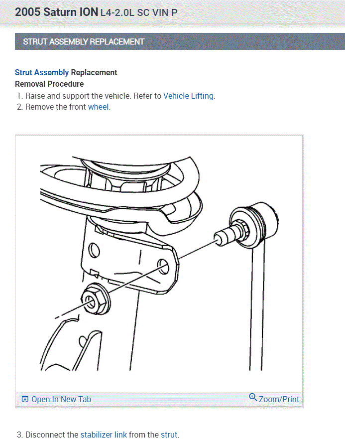 If you look below, starting with pic 2 are the directions for replacing the strut assembly. It really isn't hard to do. Note that after the replacement, the vehicle's alignment should be checked. Additionally, here is a link that explains the replacement process. You can use this to help guide you.
