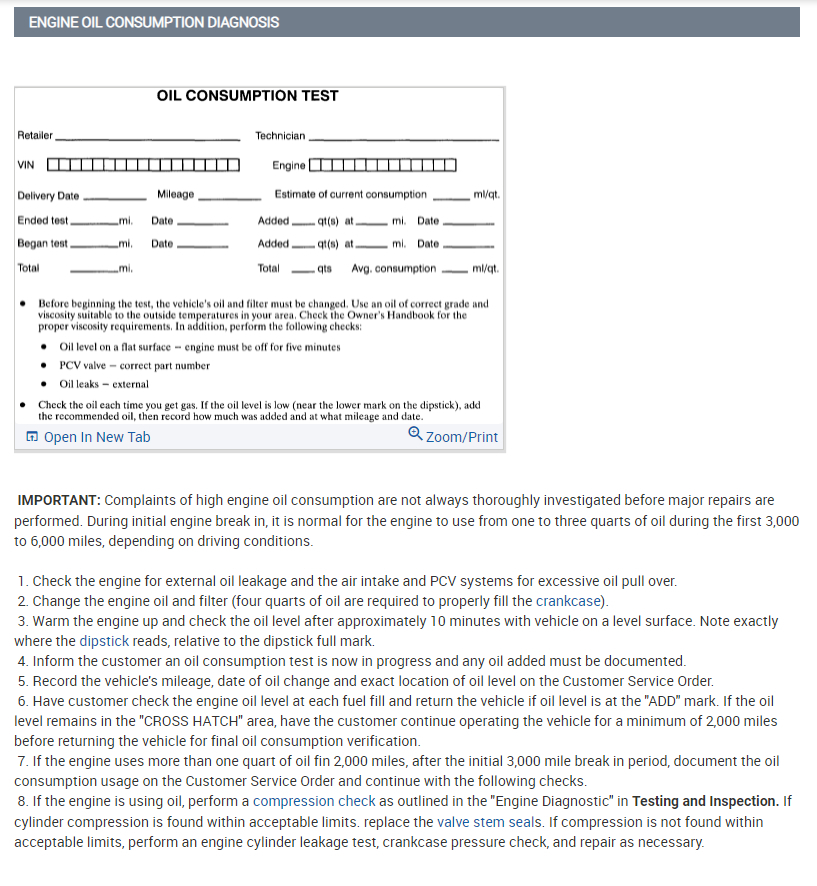 This engine typically has oil consumption of 1 quart every 2,000 miles.