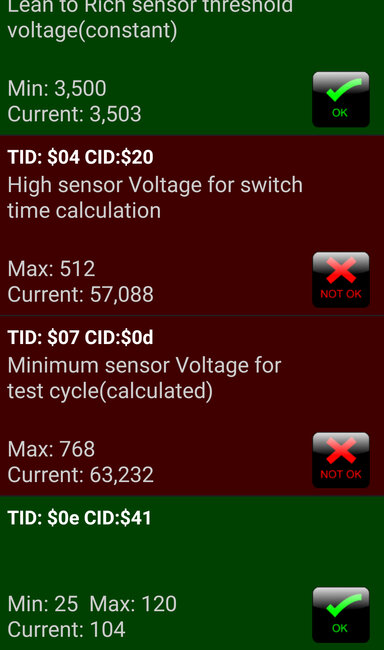 One last thing, the Lean-to Rich Sensor threshold voltage is just above the minimum, so the Oxygen sensors are looking like they are due for a change. It is passing the monitor, but just barely, they get lazy and worn out like every other part eventually. Hope this all helps.