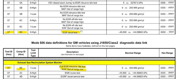The other Test ID is for the EGR valve decel test, So the EGR valve may have some carbon build up on the valve itself or the pipe leading to the exhaust. They tend to get carbon build up in them over time and with the age of the vehicle, you may want to take the valve off and inspect all the passages from the exhaust to the intake manifold. With the age of your vehicle there will most likely be carbon build up. This monitor looks like it monitors the mass air flow sensor while activating the EGR valve for any change. I will post some more information on the mass air flow sensor if your vehicle has one. I have not looked at the wiring diagrams yet for the vehicle.