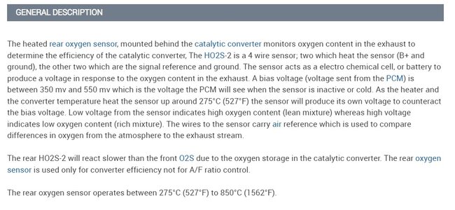 The rear oxygen sensor has a heater circuit built into it; the heater gets the sensor working faster on cold start-ups.