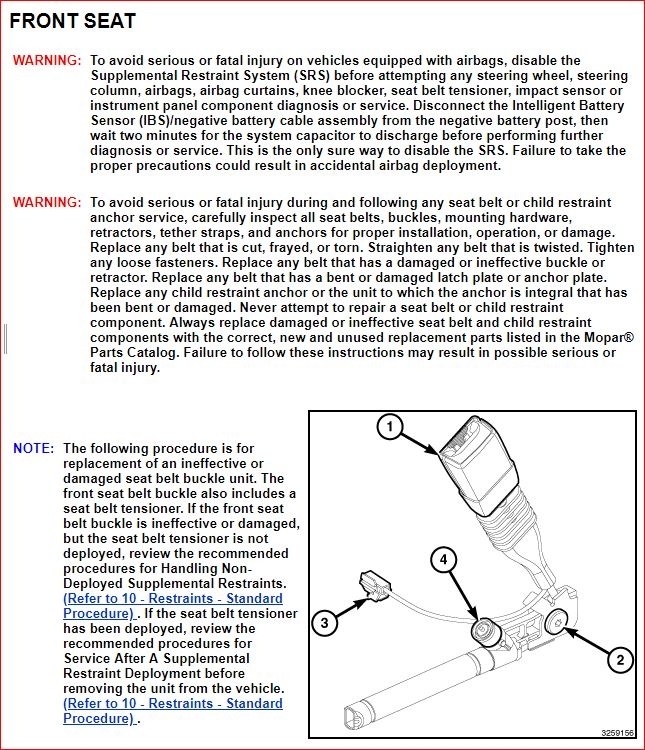 When you say seat belt latch, I assume you are referring to the buckle. They are pretty interchangeable terms but I just want to make sure I provided what you are looking for. Here is the complete procedure. Please make sure you read through the entirety of the documents because the SRS or airbag system is involved and I don't want to inadvertently activate the system.