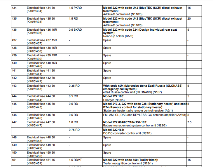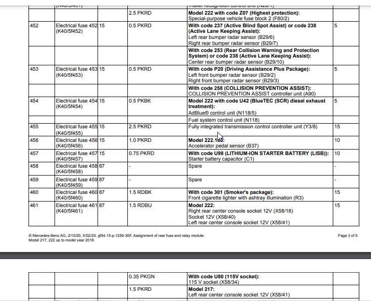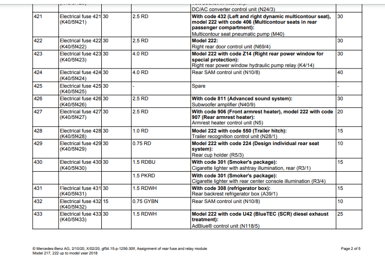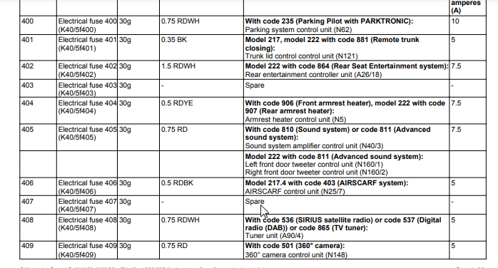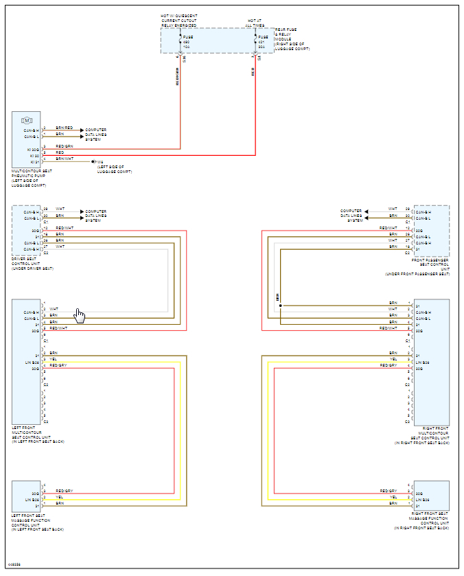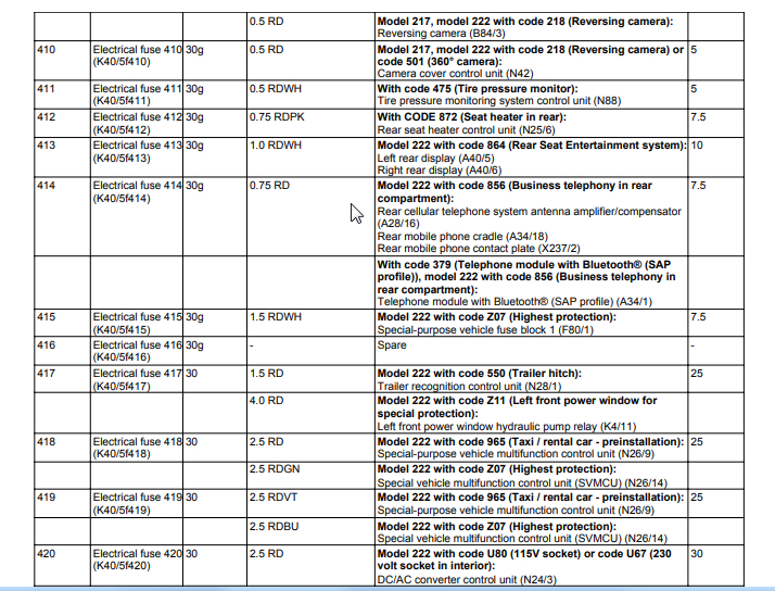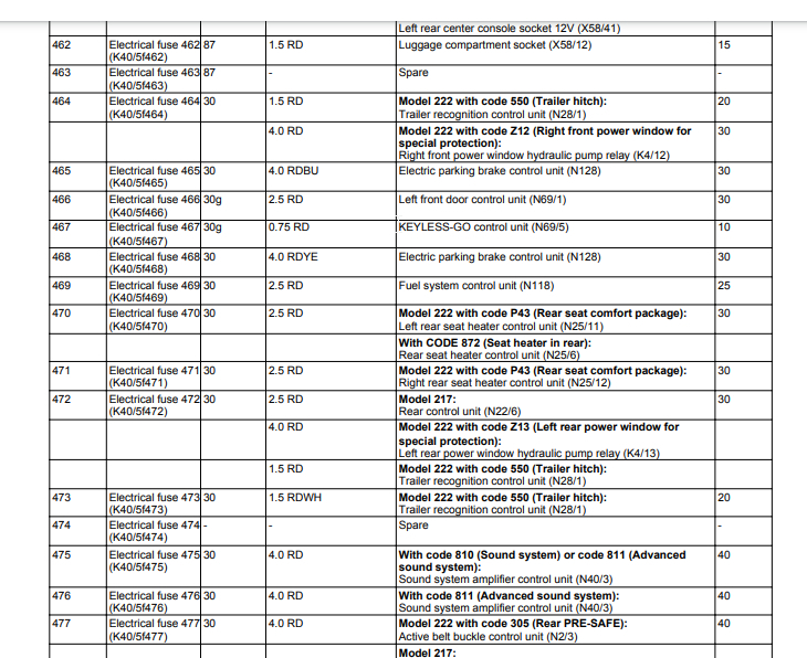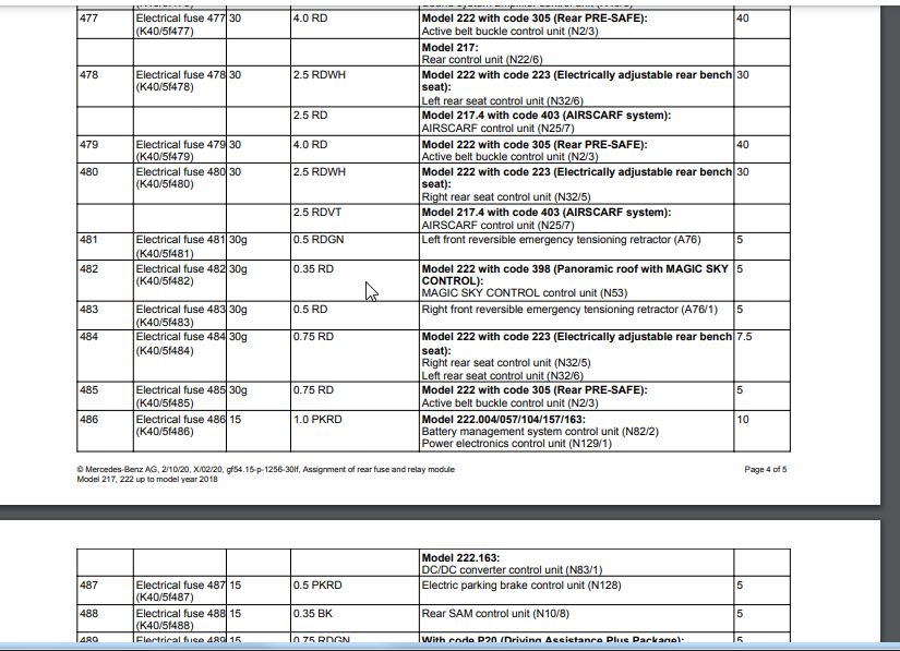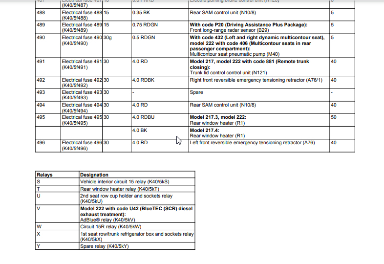 Seat massage inoperative. My fuse chart located in trunk does not list the pump fuse, multi contour seat fuse or dynamic seat fuse. My car has these features. The online charts I found do show these fuses. The other weird thing is that chart in my rear trunk fuse module lists fuses in the 400 to 497 range, while online the numbers only go up to 200 or so. I am confused on these two things. Any help would be greatly appreciated.