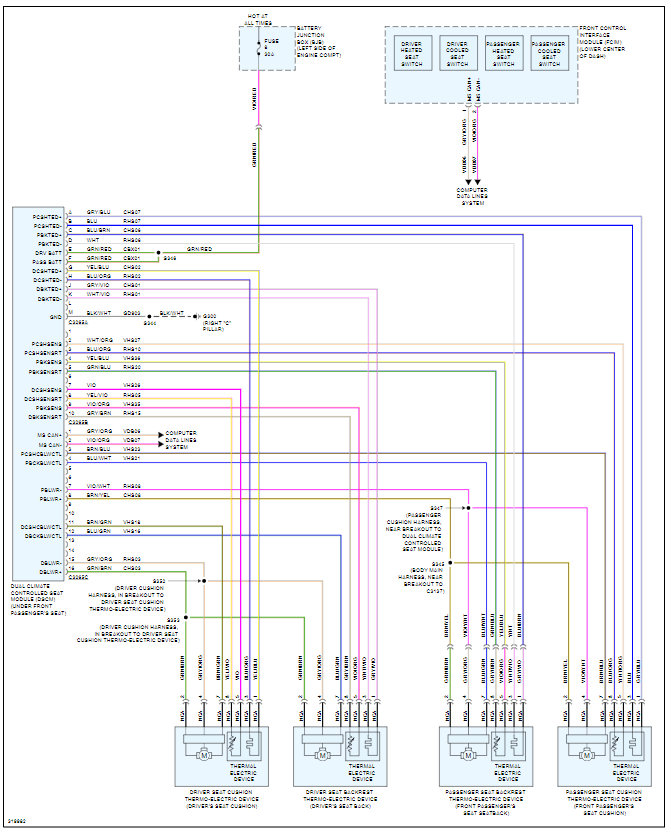 Those connectors do not appear to be for the heated and cooled seats. Are these the connectors for the modules that are under the front seats? If so, those are the driver and passenger seat modules which are different. I attached the wiring diagram for the driver seat module.