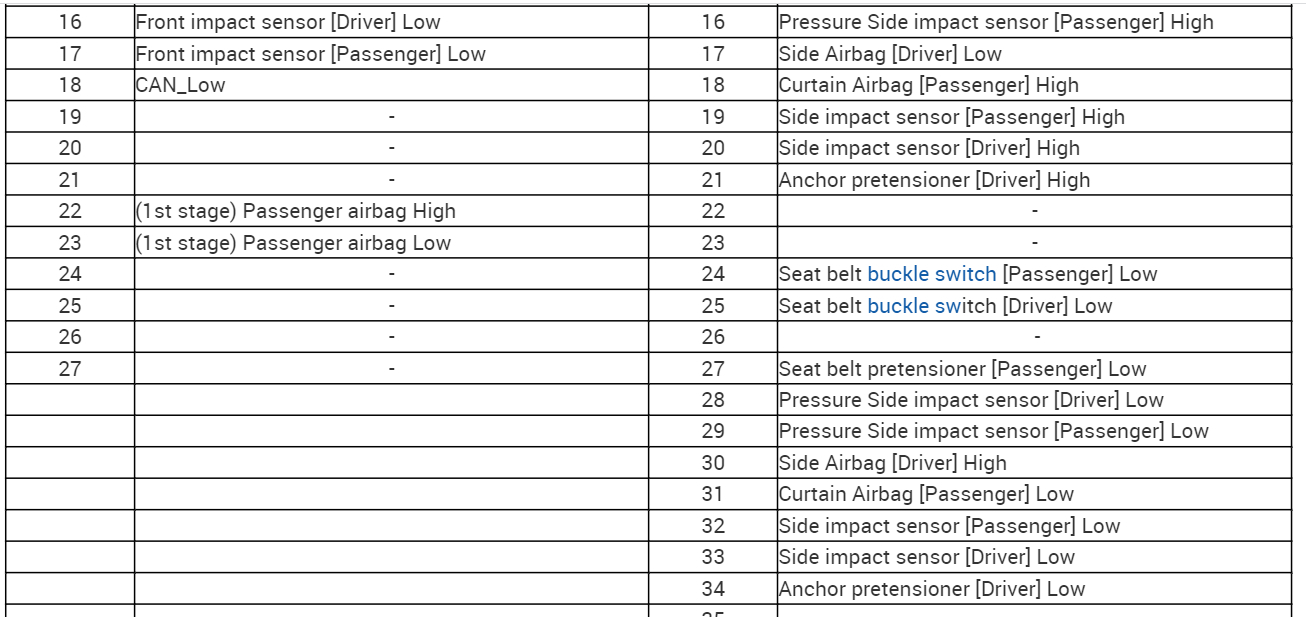 I attached the supplemental restraint system wiring schematics below. They include the seat belt buckle wiring as well.