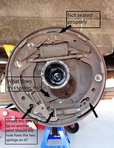 I should mention too that even if you over-adjust the shoes and manage to force the drum on, you'll only wear down less than 1/16" of lining right in the center. That's why I said you're over-thinking the adjustment issue. Be sure the star wheel adjusters are free and the threads can be lightly lubricated, and be sure the shoes are against the large anchor pin on top and there's free play in the strut bar.