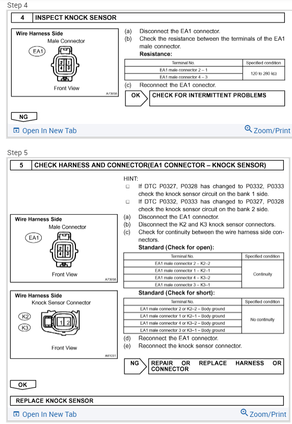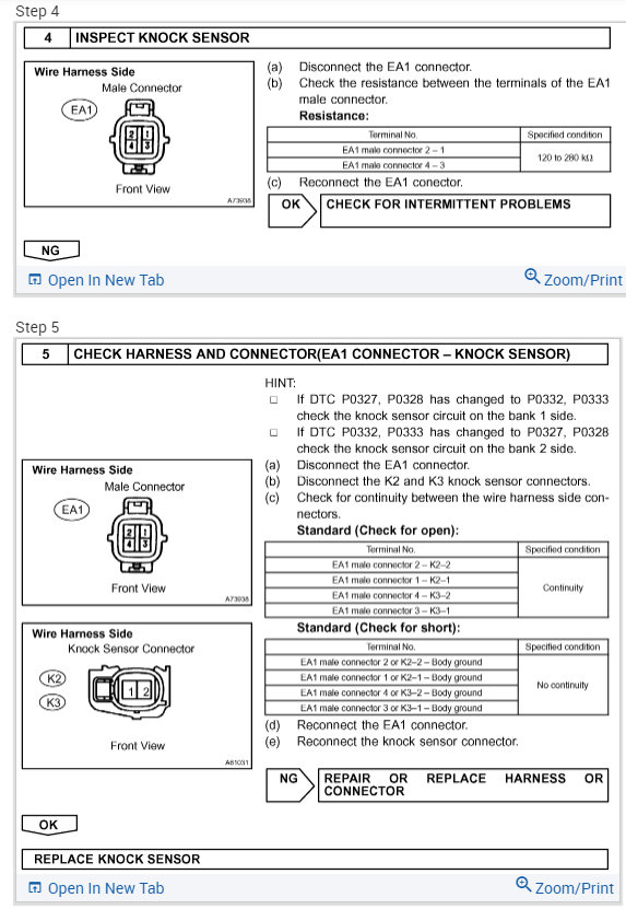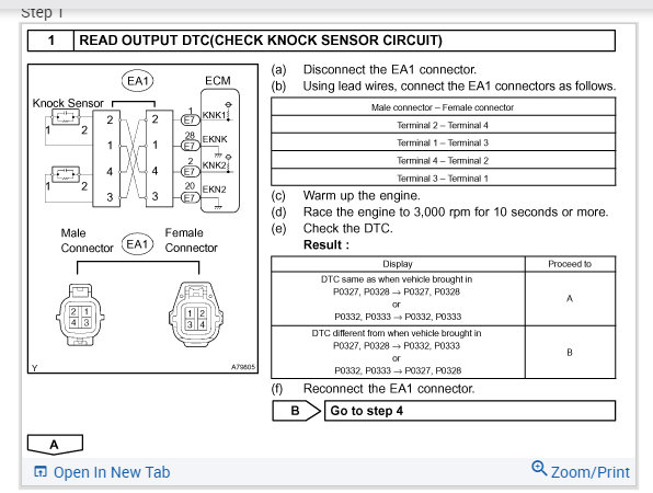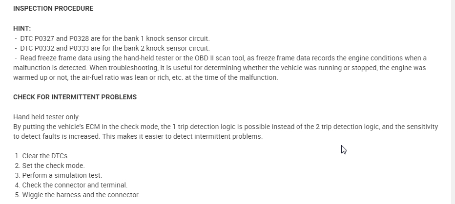After work I started the van the light was on. I took it to a local auto parts store where they had me connect a hand held scan tool. The parts store employee said it came up "P0328"knock sensor 1 circuit high input (bank 1).