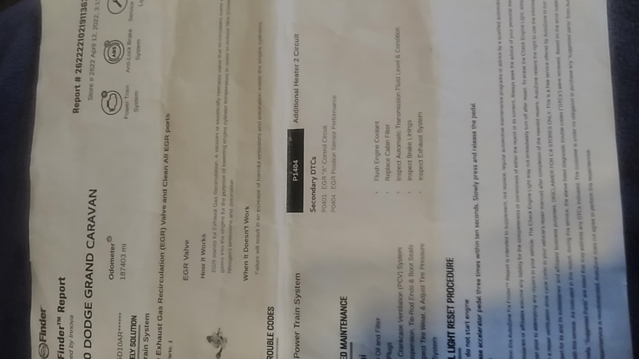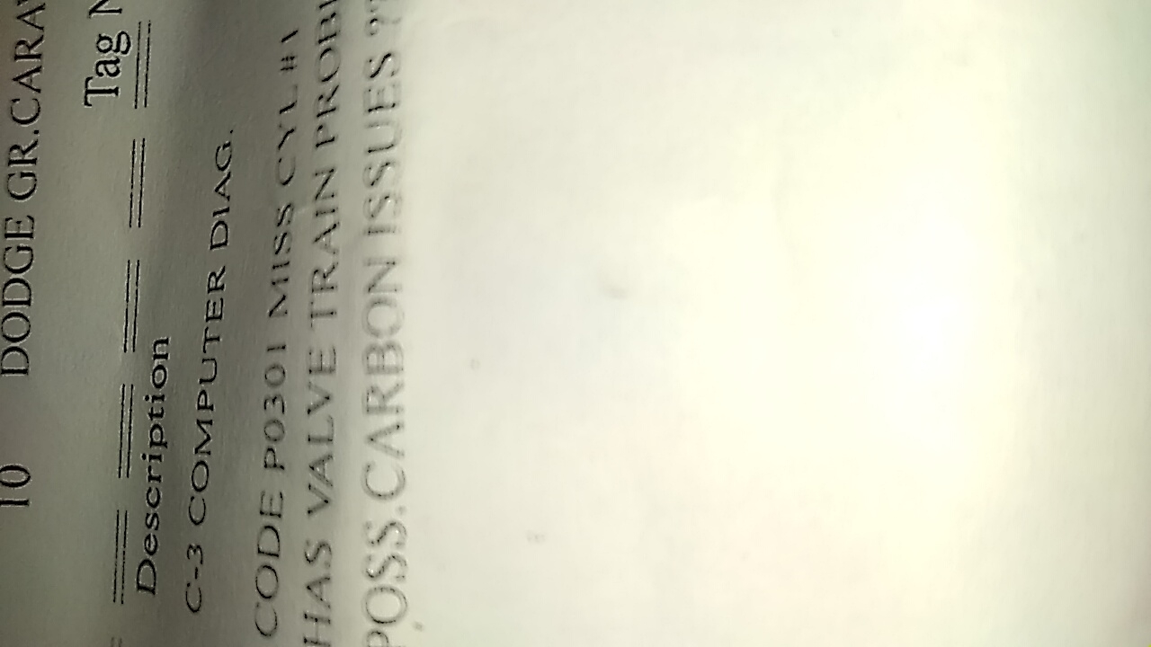 Okay, I'm having a little bit of trouble with what you're saying, but that's okay. So, it sounds like you took it to AutoZone first? I know they can tell you what the codes are in the computer. And are you saying that you have purchased those components already, the PCM, crankshaft position sensor, EGR valve, and fuel injectors? All I can see on the picture is " Computer Diag, Has Valvetrain problem, and something about carbon build up. If you could get a better picture of that so I can see the whole thing. Sometimes picture from customers don't come out to well over the internet, but your question about the "valve train" is. The valve train is the upper parts on top of the cylinder head under the valve cover. So, this will include the camshaft, the intake and exhaust valves, valve springs, and rocker arms which open the valves. And I think what he was saying on there is a build up of carbon deposits on these components will affect the performance. Carbon build up on the intake and exhaust valves for example can cause them to not open fully and/or hang open when they should be closed. You may hear a lot of ticking type of noises with valve issues.