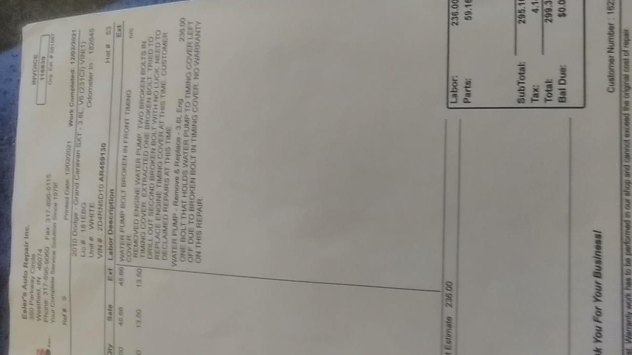 So, try to post a better invoice picture and we'll go from there. You can go to a couple of different shops and show them the invoice as well and get different quotes. You will notice a difference for sure doing it that way.