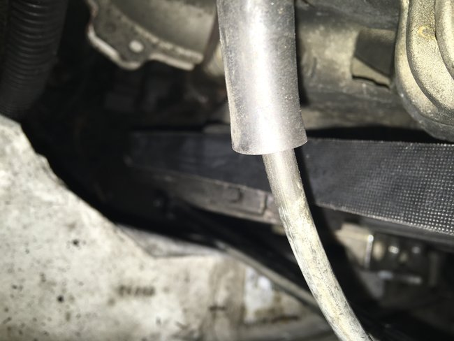 Picture looks to show a vacuum line pull it out of way and tie it with a ty wrap. We only list a 3.1 but picture shows routing. Tensionser should be changed as well though. See picture of routing you may have it on wrong.