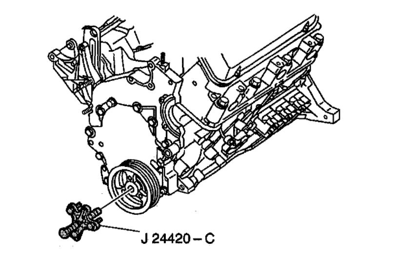 11. Remove the crankshaft balancer. Use the J 24420-C.