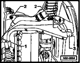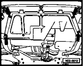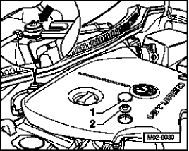 Pry out cap -1- and remove nut underneath -2- (tightening torque: 7 Nm )