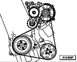 If a used ribbed belt is to be reused, mark direction of rotation before removing. When installing used ribbed belts observe the direction of rotation marked on removal. Installing opposite to the direction of rotation leads to belt damage!