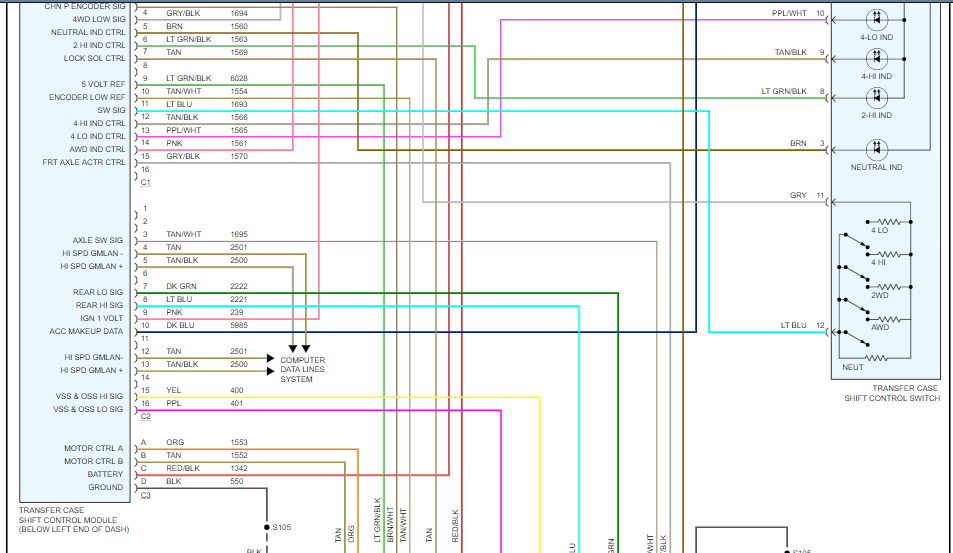 Service four-wheel drive message appears as soon as key is turned on. Replaced the transfer case actuator to no avail. (No sound at the transfer case while selecting 4x4) Needing wiring diagram from the rotary switch to the TCCM and transfer case. This vehicle has the round switch and not the push button style. Edit: 150,000 miles
