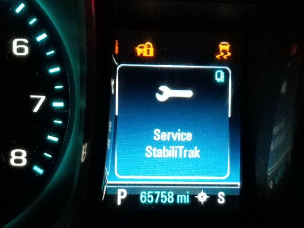 Hi, I hope you can help me. I changed my front brakes and front passanger side brake rotor three hours ago, after I was done I drove it for a few blocks and all of the sudden I got a service stabilitrac. I am attaching picture. Do not know if this will help, but while I was changing my brakes my battery died. I guess battery is not so good anymore. So I jump started it. Do not know if this might interfere with this warning light I pressed the traccion control button on and off to see if any changes but no luck. Hope you can help. Thanks