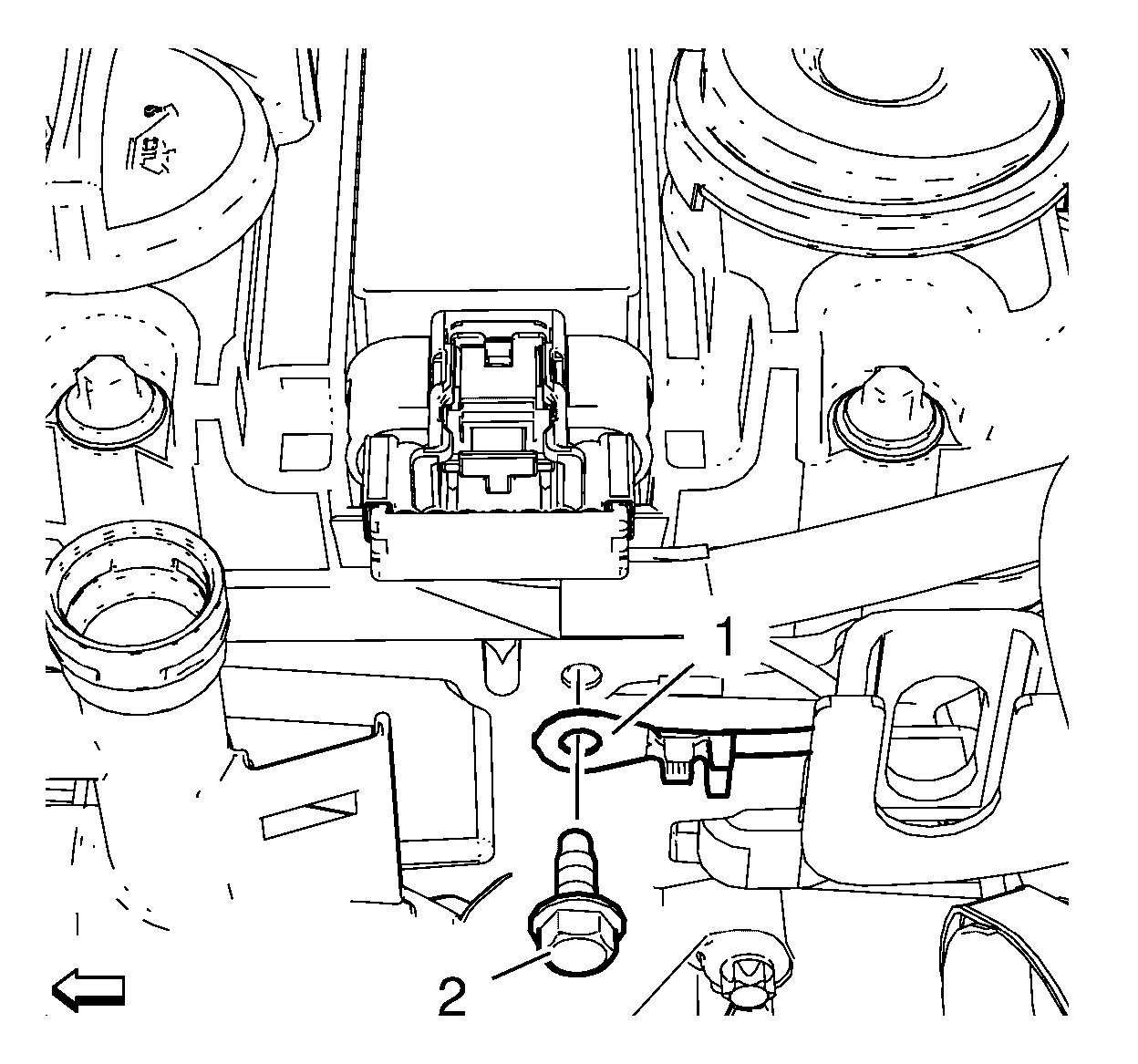14. Remove the ground cable bolt (2) and the ground cable (1).