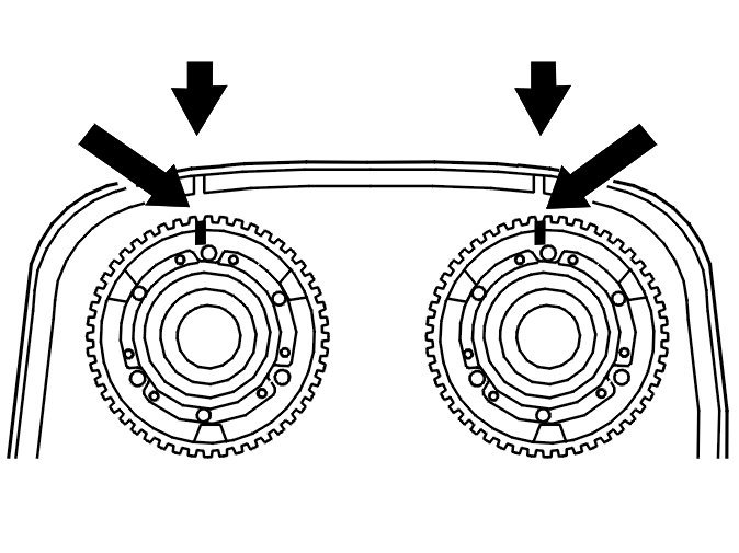 Note! The variable valve timing units do not have a return spring and are easily dislodged when reinstalling the timing belt. Check that the markings are correct.