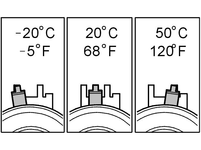 At higher temperatures (with the engine at operating temperature or a high outside temperature for example) the indicator is further to the right.