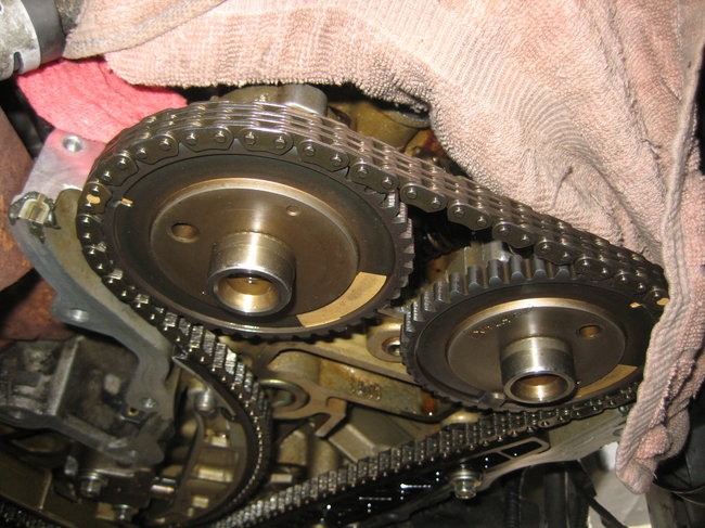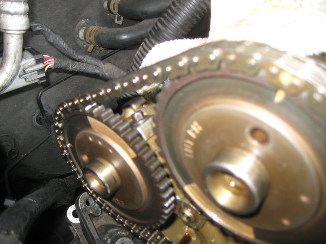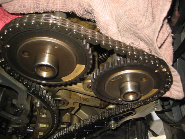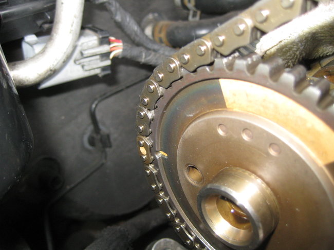 That is a good question. The marks on the timing chain and the pulleys should align. The best thing I can suggest at this point is to count links between the marks. If you count links and it is off, that will be wrong. However, please confirm that the chain isn't marked wrong. Anything is possible.