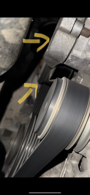 Yep, this happens when the serpentine belt tensioner goes bad, here is how to replace it, also you should install a new belt as well. Remove these three bolts after the belt is removed. While the belt is off, spin each accessory to make sure they spin freely. Check out the images (below). Please let us know what happens.