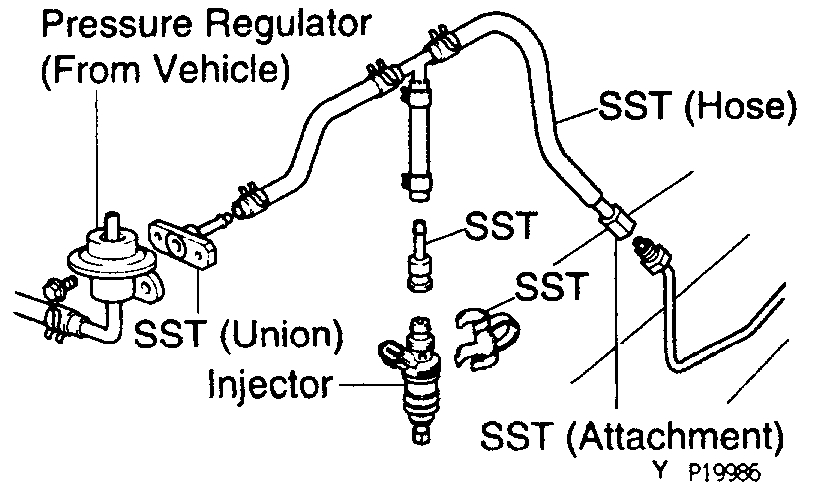 (b)Connect SST (attachment and hose) to the fuel tube. SST 09268-41046 (09268-52011)